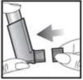 - Inspire lenta e profundamente pela boca enquanto pressiona o frasco 1 vez.