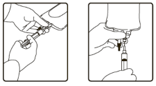 - Utilizar uma seringa com agulha estéril para perfurar o sítio próprio para administração de medicamentos e injetar o medicamento na solução parenteral.