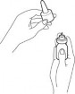 - Segure o frasco com o dedo médio e o indicador sobre o aplicador e o polegar na base do frasco.