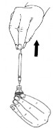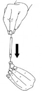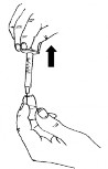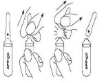 - Assegurar que não há líquido na parte superior da ampola, caso contrário, dar suaves batidas com o dedo médio sobre a parte superior da ampola, até todo o líquido descer;