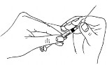- Virar a seringa com a agulha para cima e agitar suavemente para eliminar todas as bolhas de ar. Cuidadosamente, pressione o êmbolo até que a primeira gota de fluído saia da agulha;