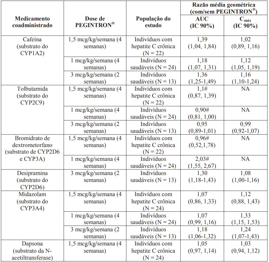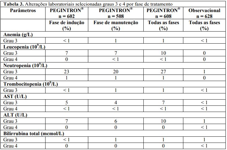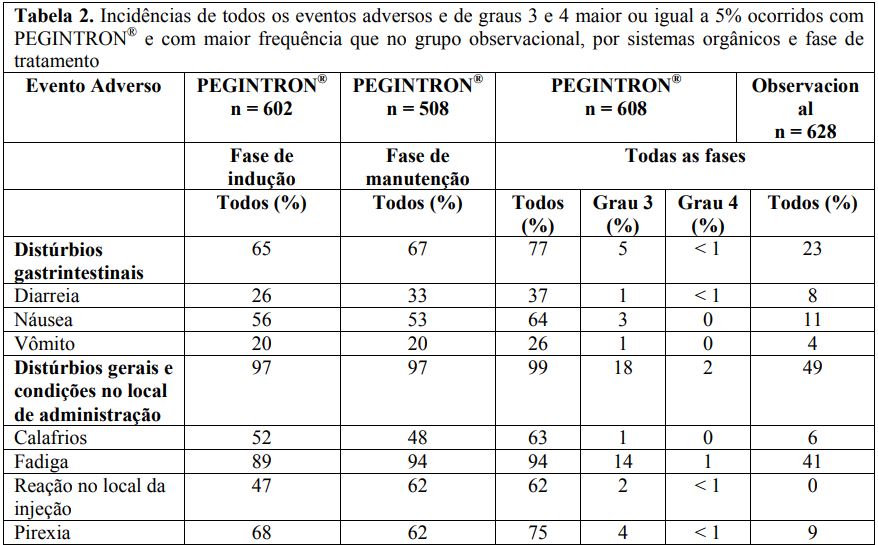 Os indivíduos tratados com alfapeginterferona 2b apresentaram discretas elevações de temperatura corporal e níveis de neopterina e redução do número de leucócitos e neutrófilos relacionada à dose.
