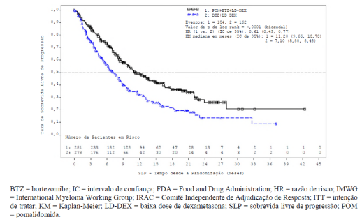 Pomalyst® em combinação com bortezomibe e dexametasona é indicado para o tratamento de pacientes com mieloma múltiplo recidivado ou refratário que receberam pelo menos um esquema de tratamento anterior, incluindo lenalidomida.